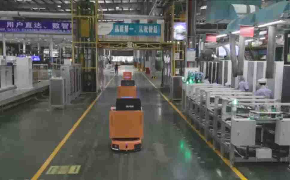 为车载冰箱物流配送打造的智能解决方案,,,,包含产中物流通过潜伏举升AMR搬运至线边,,,产后成品物流智能仓储,,,,流程包含产中物流智能齐套入库,,,,线边安灯叫料AMR智能配送至线边,,,成品入库、、、、出库,,,通过无人堆高车机器人,,,智能仓储管理替代人工作业管理,,,实现更高存储、、、更高效率、、更具柔性化的解决方案。。。